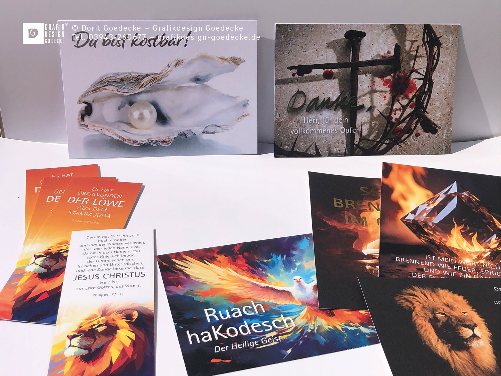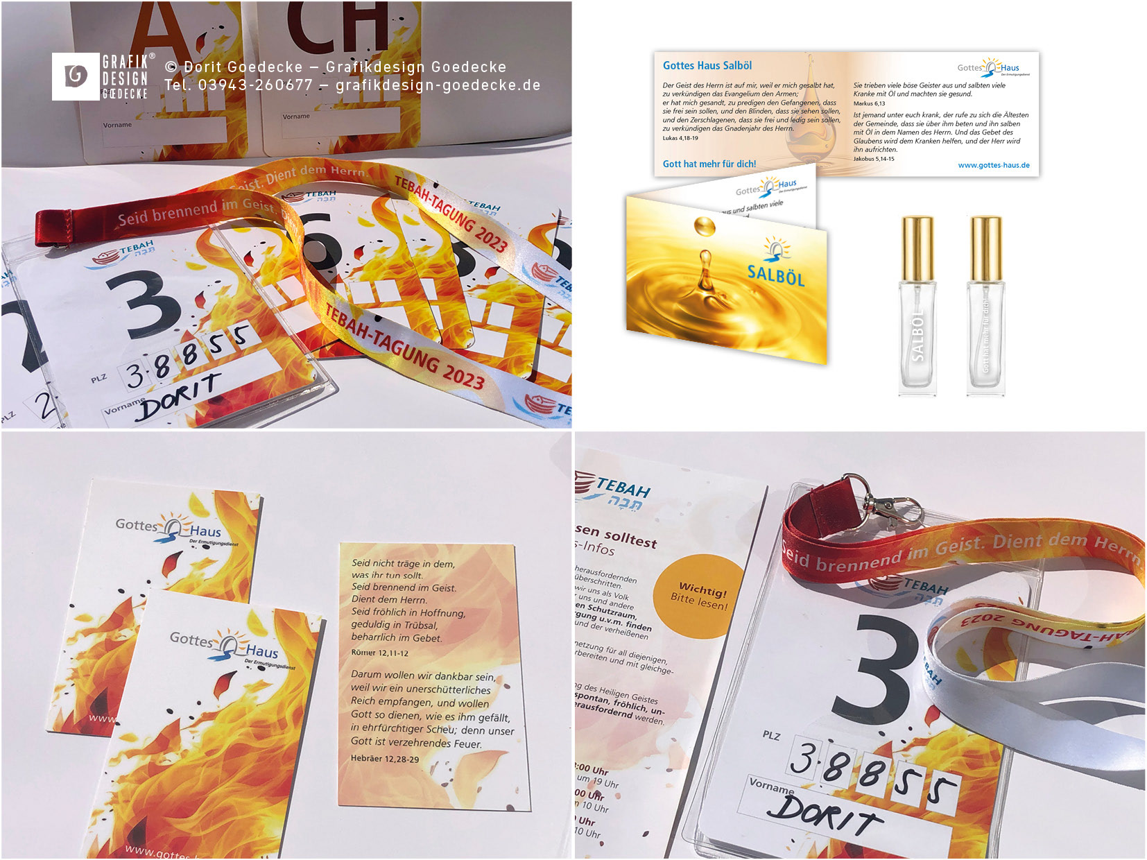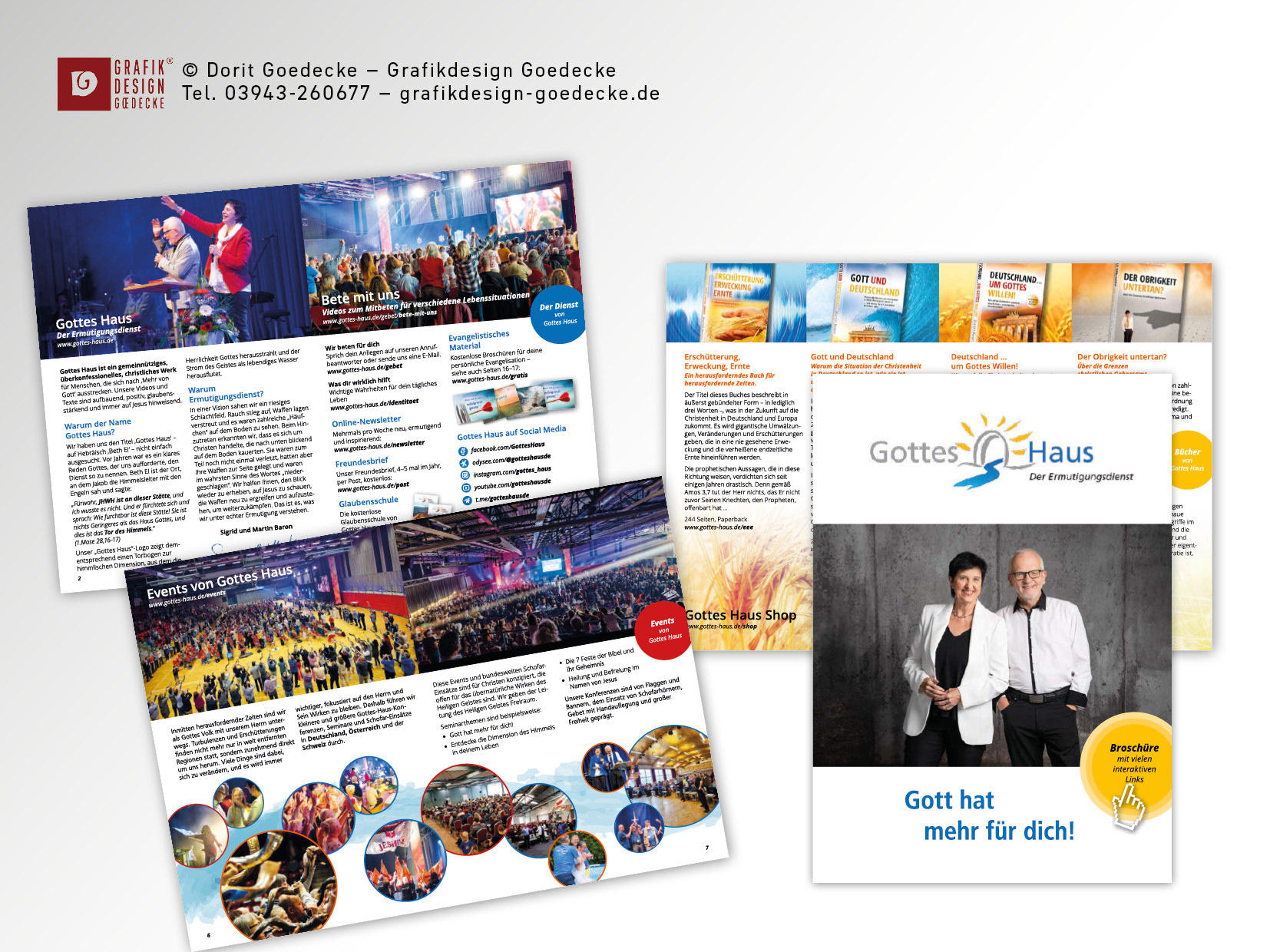 Seit 2023 gestalte ich die Konferenz-Infos und verschiedene Produkte sowie Postkarten. Mitte diesen Jahres ist die Selbstdarstellung des Werkes von Martin und Sigrid Baron als 36-seitige Broschüre von mir gestalterisch umgesetzt worden. Mehr Info: gottes-haus.de